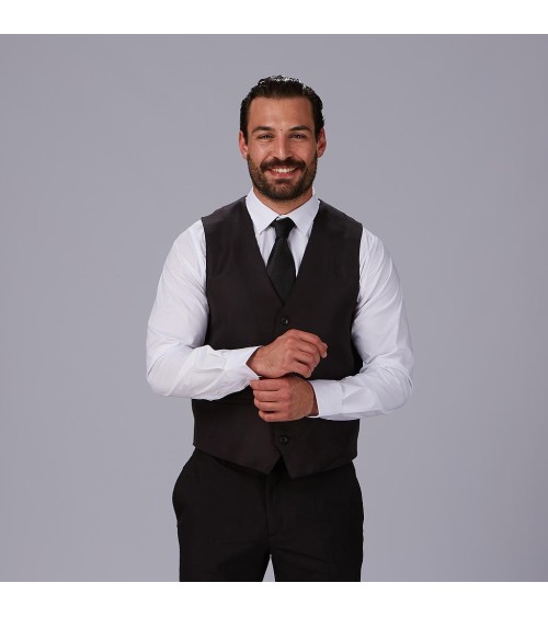Este chaleco para camarero hombre es el clásico que nunca falla para dar imagen profesional. Con su corte ajustado y botones de pastilla negros,...