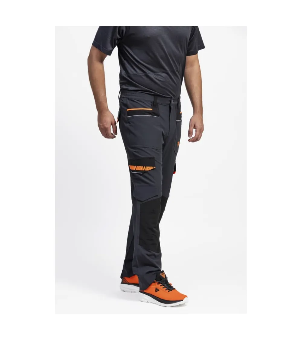 Este pantalón elástico combina resistencia y flexibilidad con un diseño lleno de detalles prácticos. Con múltiples bolsillos, rodillas reforzadas con pinzas decorativas y toques reflectantes, se convierte en la prenda ideal tanto para el día a día como para actividades más intensas.